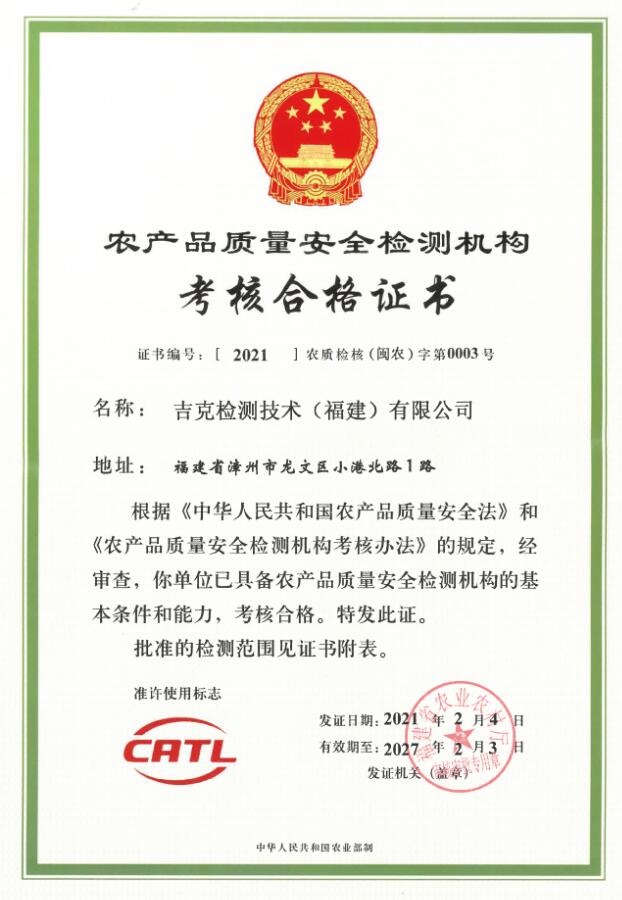 吉克檢測技術(福建)有限公司,位于福建省漳州市龍文區(qū)小港北路1號,于2019年8月注冊成立,是一家獨立的第三方檢測公司。公司已經(jīng)通過檢驗檢測機構計量認證(CMA)、農產品質量安全檢測機構資質認證(CATL),獲得中國合格評定國家認可委員會(CNAS)認可。公司本著“嚴謹、規(guī)范、高效、協(xié)作”的原則和對客戶及社會高度負責的精神,充分利用本公司優(yōu)質的檢測環(huán)境、先進的檢測設備和專業(yè)的技術人員,第一時間為客戶提供科學、公正、準確的檢驗檢測報告。 公司實驗室面積1100多平方米,儀器設備兩百多臺(套),固定資產一千多萬元,在職員工31人,技術人員中的中高級職稱及同等能力人數(shù)占60%以上。我們的服...